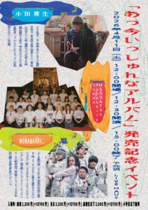 日 時 : 2026年4月11日(土)12:00開場/12:30開演 – 15:00終了 出演: はるべり&The Raspberry Scone @v.a.haruberi_0307 小田晃生 @kohsey MURABANKU。@murabanku 会 場:LIVE HAUS(下北沢) 〒155-0031 東京都世田谷区北沢2丁目14−2 地下1階 入場料 : 前売3,300円(+1D700円) 当日3,500円(+1D700円) 高校生以下2,000円(+1D700円) 小学生以下無料 予約フォーム:https://forms.gle/npNk89SnY614ghVD7 主催:saitocno label デザイン:志村弥音@neneimaginations 写真:永戸耀士@nagato.youji